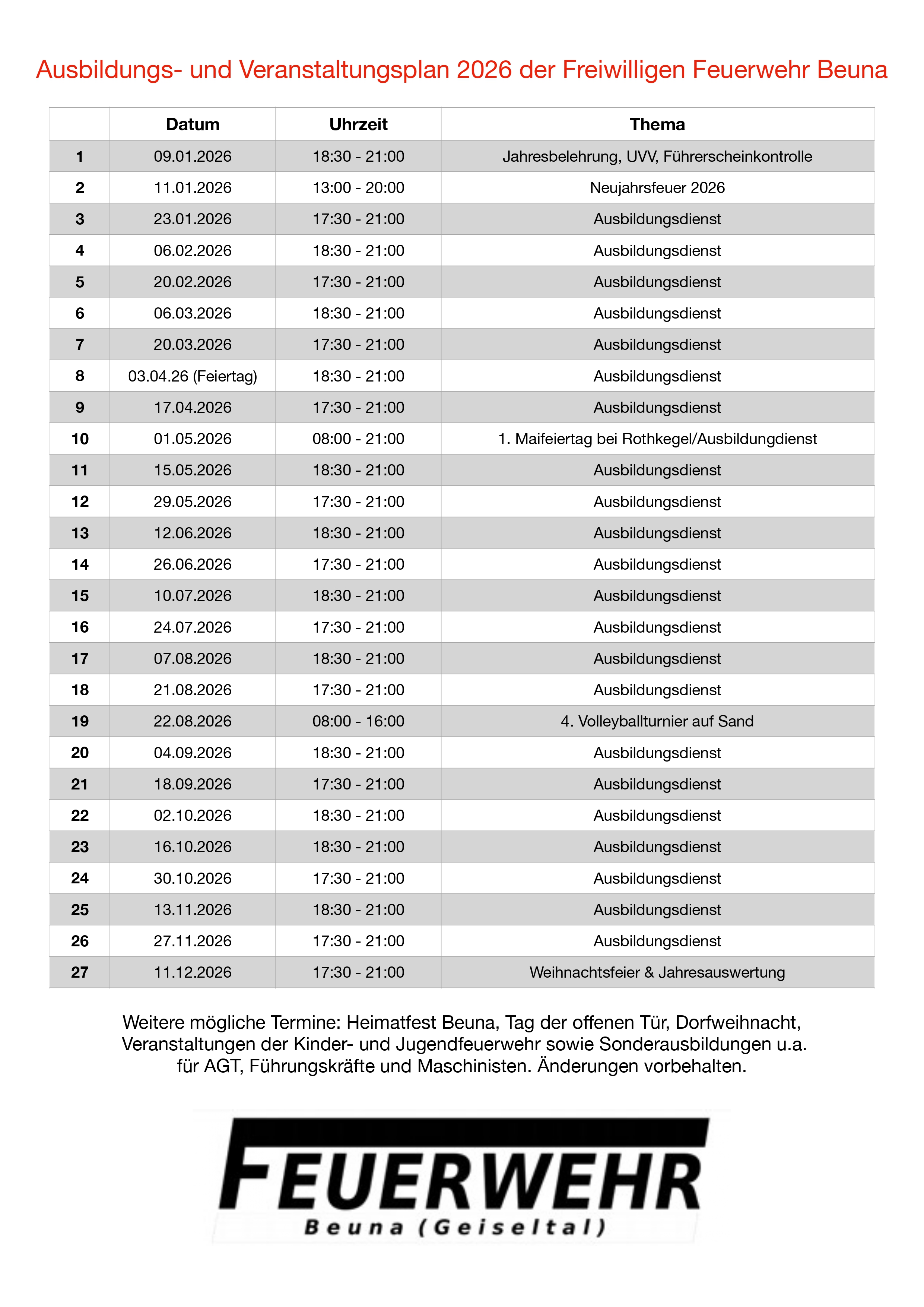 Hast auch Du Interesse an diesem Ehrenamt? Dann laden wir Dich herzlich ein, bei einem unserer Dienste vorbeizuschauen, uns an unseren Grill- und Ausstellungsständen bei Festlichkeiten in Beuna anzusprechen, oder über die Kontaktdaten im Reiter „Kontakt” an uns heranzutreten. Wir freuen uns auf Dich!